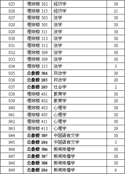 附表2:2018年同等学力学科综合水平全国统一考试考场安排