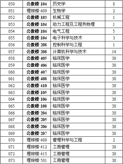 山东大学考点考场安排在中心校区理综楼、公教楼,考点位置示意图见附图1。请考生根据本人准考证副本左下方的考场号,查看考试所在教室(见附表1、2),并于5月19日下午14:00后到山东大学中心校区理综楼、公教楼查看考场。